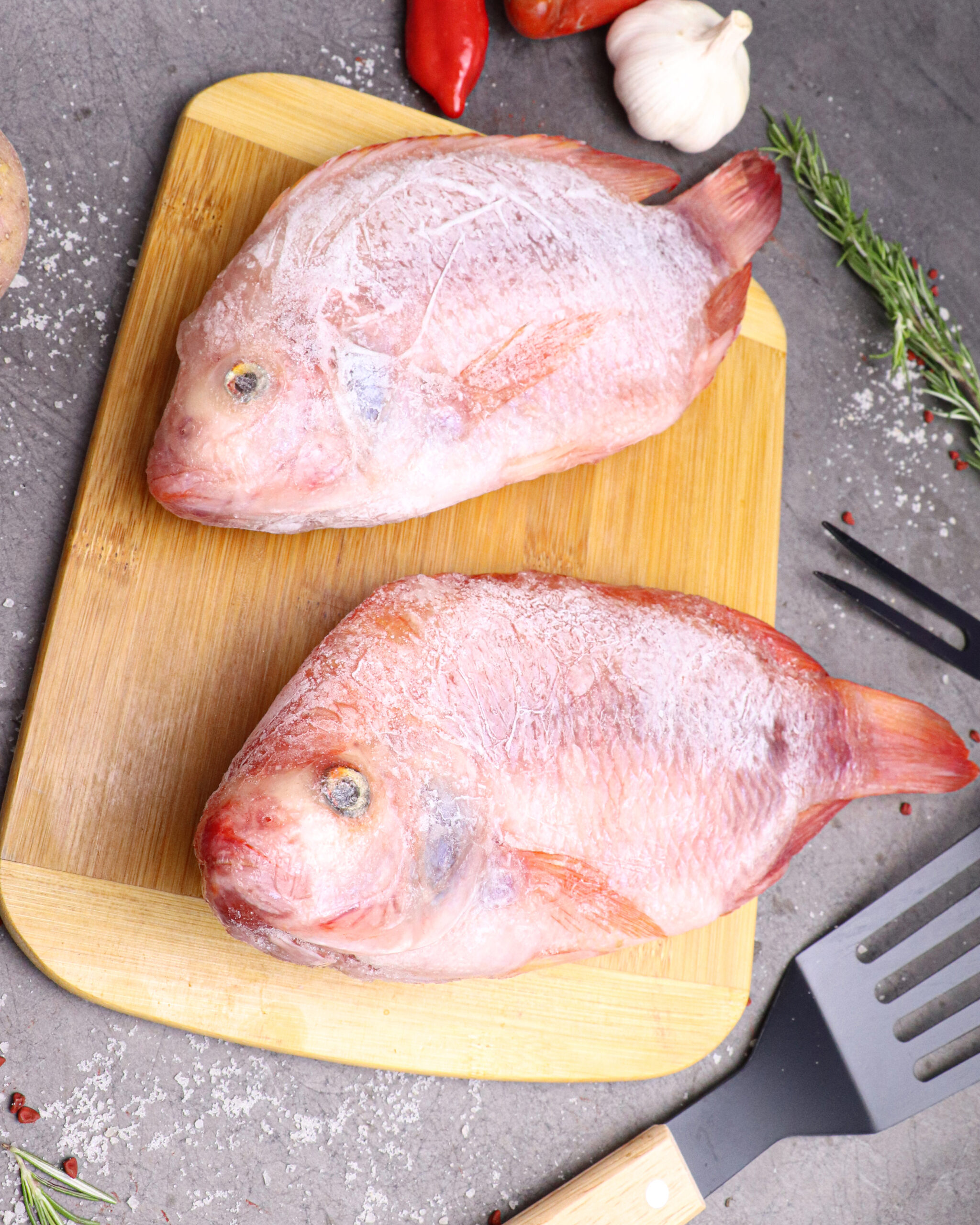 pescado completo de tilapia ubicado en la región del cuerpo entero, que es blanco, magro y suave. Es recomendable para freír o asar.